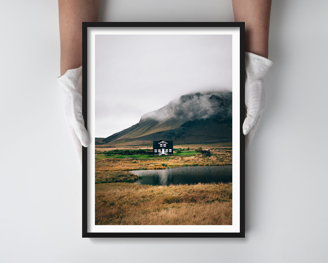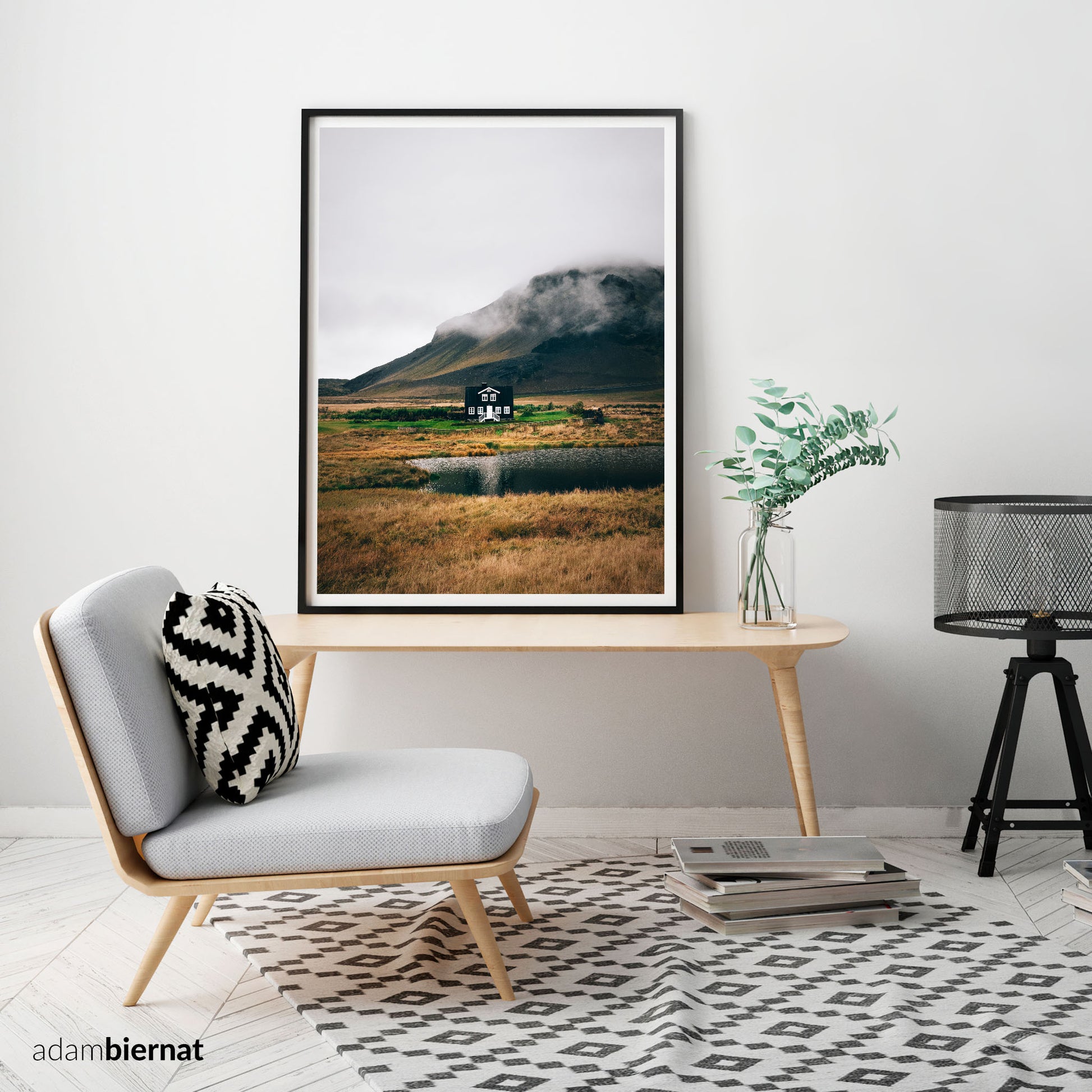 A cozy black house surrounded by golden fields and misty mountains, this print captures the mysterious charm of Iceland’s Snæfellsnes Peninsula. It’s a reminder of the quiet beauty found in life’s simplest moments.