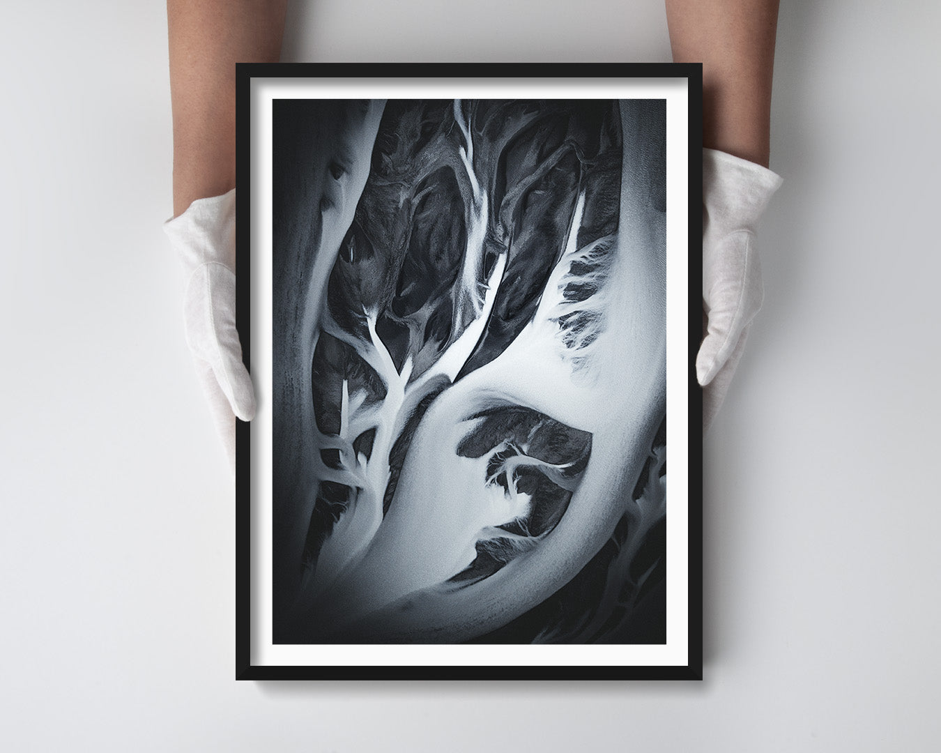 Luxury, museum-quality, aerial landscape fine art photography print (signed by the artist, with a certificate of authenticity) by Adam Biernat, an award-winning photographer published in the top Icelandic magazines.