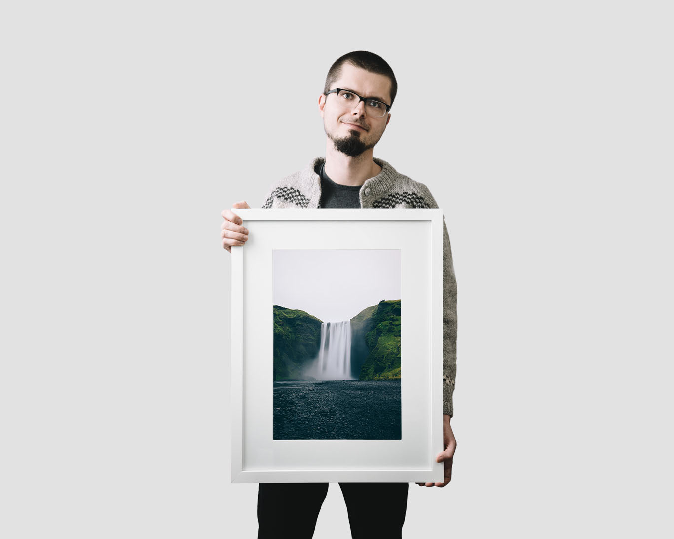 Luxury, museum-quality, real fine art photography print (signed by the artist, with a certificate of authenticity) by Adam Biernat, an award-winning photographer published in the top Icelandic magazines. It features Skógafoss waterfall in South Iceland.
