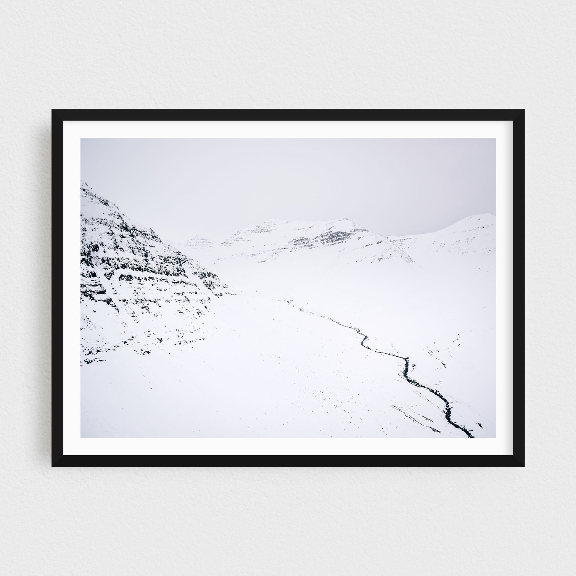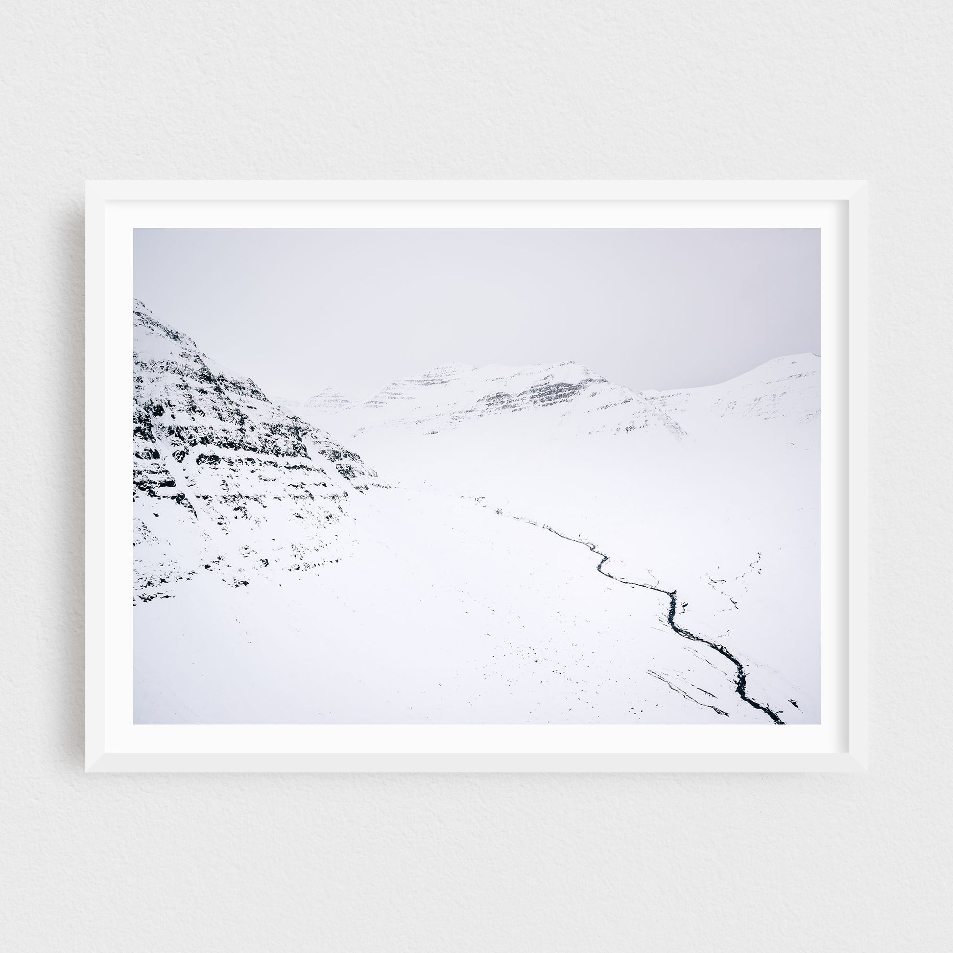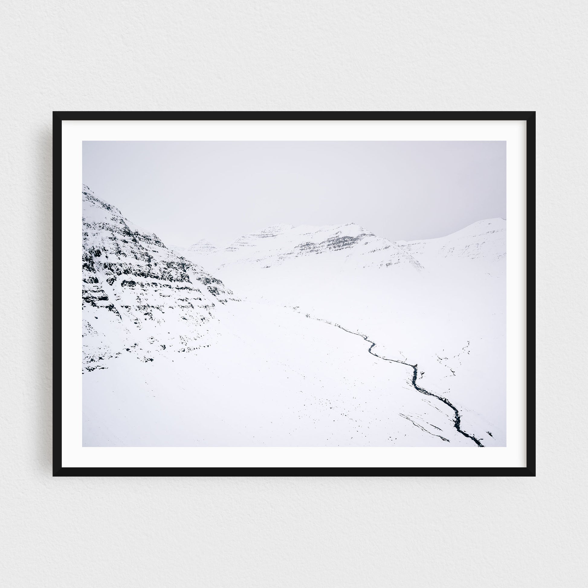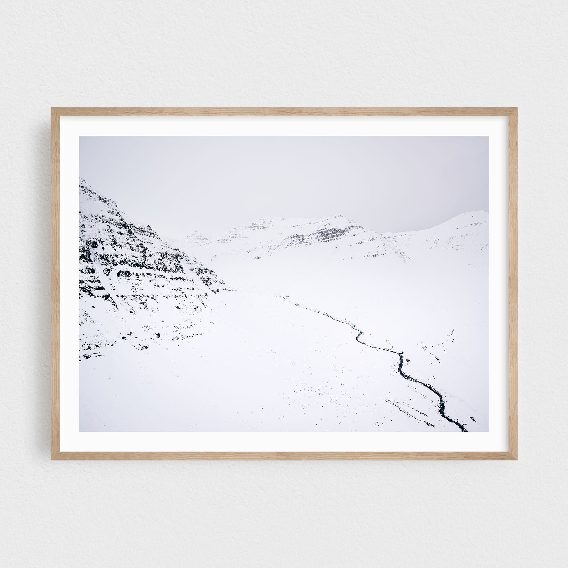 Luxury, museum-quality, real fine art photography print (signed by the artist, with a certificate of authenticity) by Adam Biernat, an award-winning photographer published in the top Icelandic magazines. It features the snow-covered mountain of Ytrárfjall in North Iceland.